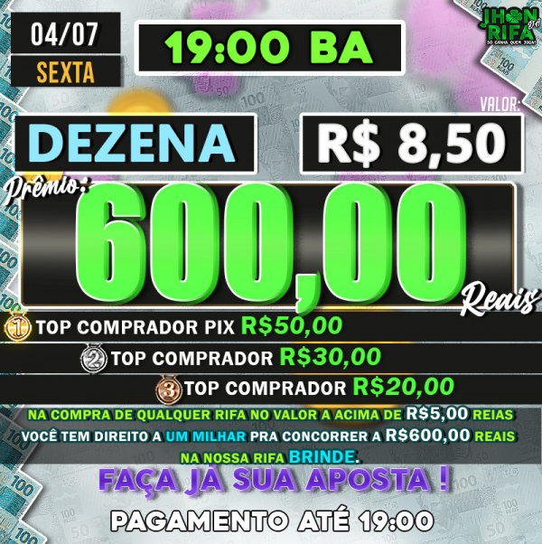 TOP 1ºR$50,00 /TOP 2º R$30,00 /TOP 3ºR$20,00