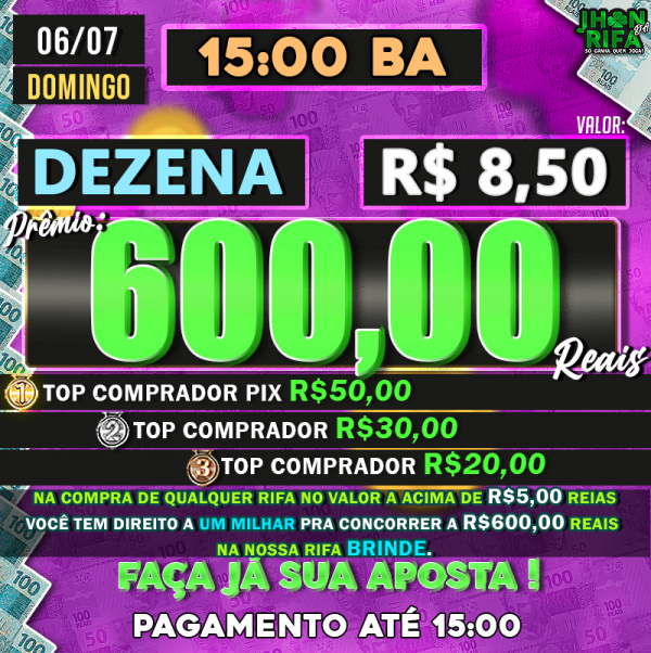 TOP 1ºR$50,00 /TOP 2º R$30,00 /TOP 3ºR$20,00