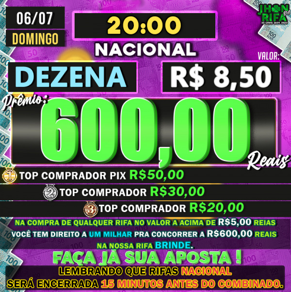 TOP 1ºR$50,00 /TOP 2º R$30,00 /TOP 3ºR$20,00