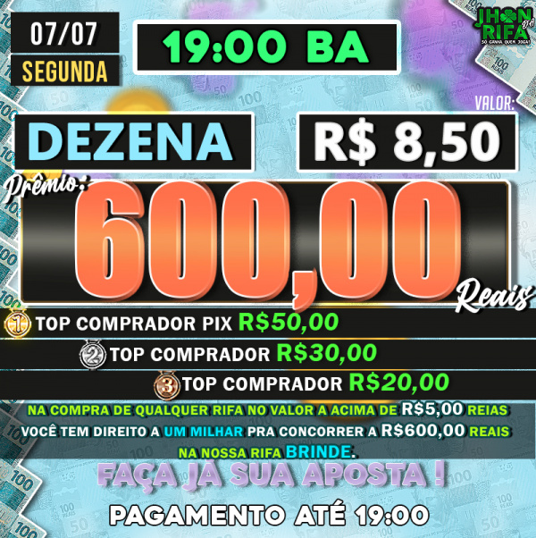 TOP 1ºR$50,00 /TOP 2º R$30,00 /TOP 3ºR$20,00