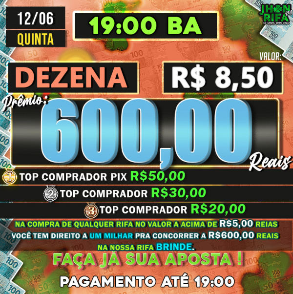 TOP 1ºR$50,00 /TOP 2º R$30,00 /TOP 3ºR$20,00