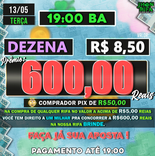 Sorteio: 13/05/2025 às 19:00