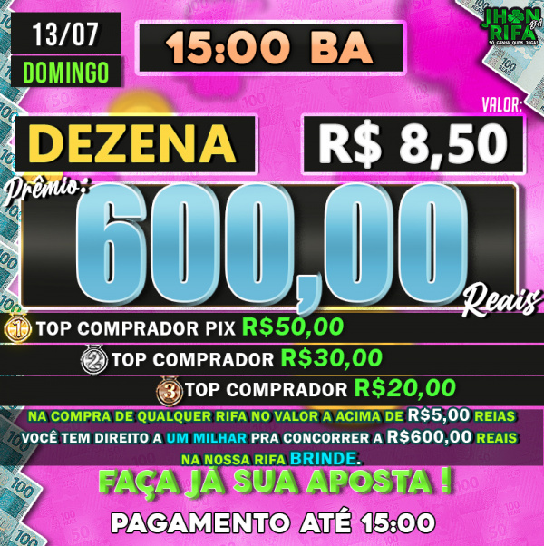 TOP 1ºR$50,00 /TOP 2º R$30,00 /TOP 3ºR$20,00