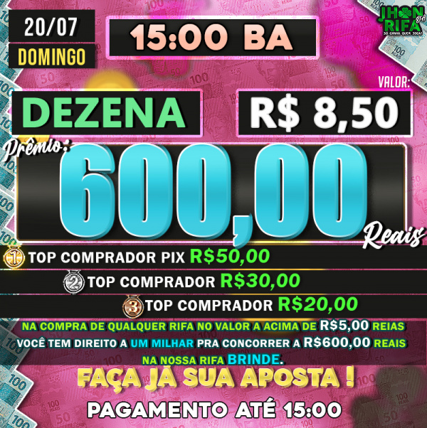 TOP 1ºR$50,00 /TOP 2º R$30,00 /TOP 3ºR$20,00