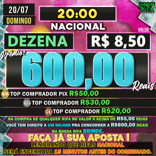 TOP 1ºR$50,00 /TOP 2º R$30,00 /TOP 3ºR$20,00