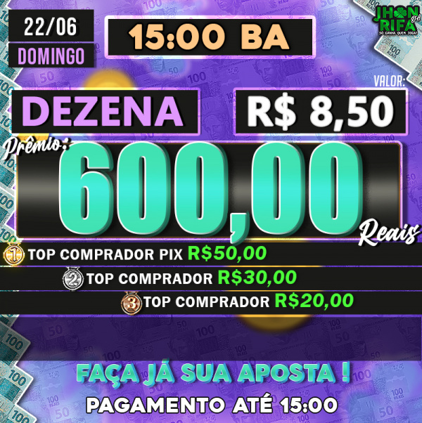 TOP 1ºR$50,00 /TOP 2º R$30,00 /TOP 3ºR$20,00