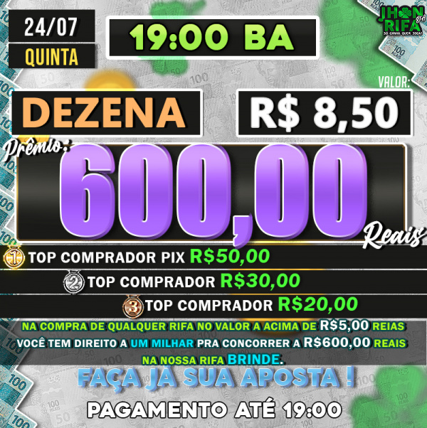 TOP 1ºR$50,00 /TOP 2º R$30,00 /TOP 3ºR$20,00