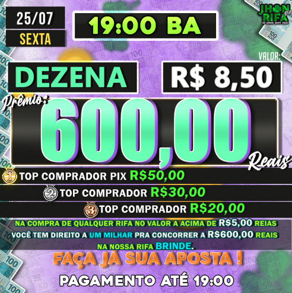 TOP 1ºR$50,00 /TOP 2º R$30,00 /TOP 3ºR$20,00