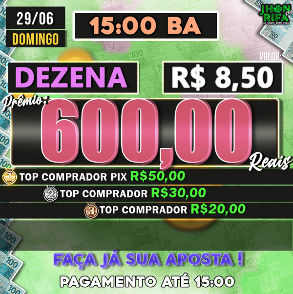 TOP 1ºR$50,00 /TOP 2º R$30,00 /TOP 3ºR$20,00
