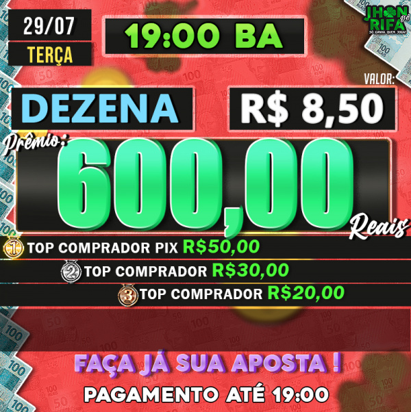 TOP 1ºR$50,00 /TOP 2º R$30,00 /TOP 3ºR$20,00