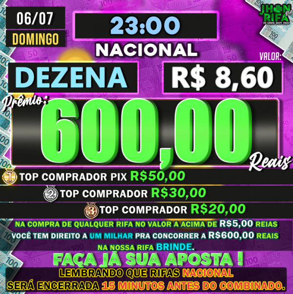 TOP 1ºR$50,00 /TOP 2º R$30,00 /TOP 3ºR$20,00
