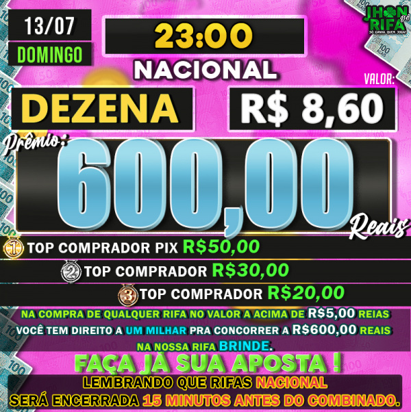 TOP 1ºR$50,00 /TOP 2º R$30,00 /TOP 3ºR$20,00