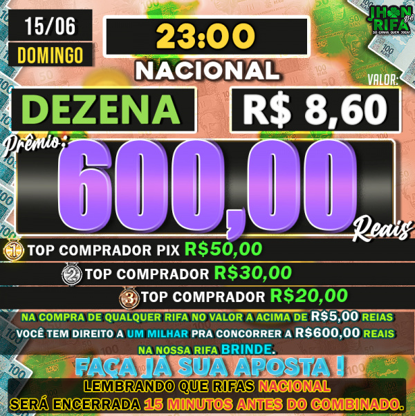 TOP 1ºR$50,00 /TOP 2º R$30,00 /TOP 3ºR$20,00