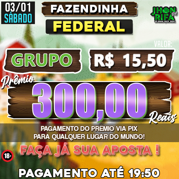 COMPLETO: R$15,50 PARA R$300,00 / METADE: R$7,75 PARA R$150,00