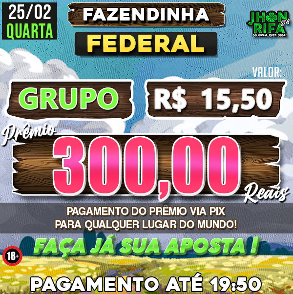 COMPLETO: R$15,50 PARA R$300,00 / METADE: R$7,75 PARA R$150,00