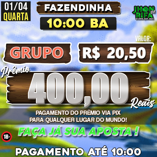 COMPLETO: R$20,50 PARA R$400,00 / METADE: R$10,25 PARA R$200,00