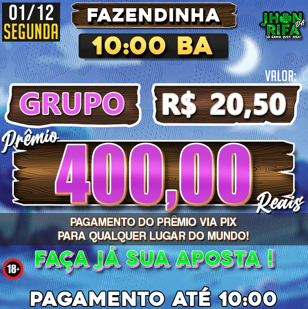 COMPLETO: R$20,50 PARA R$400,00 / METADE: R$10,25 PARA R$200,00