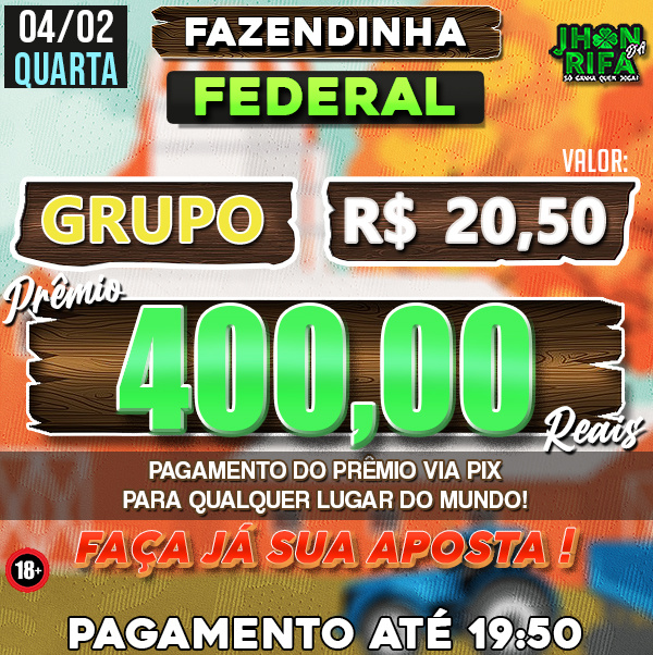 COMPLETO: R$20,50 PARA R$400,00 / METADE: R$10,25 PARA R$200,00