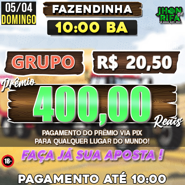 COMPLETO: R$20,50 PARA R$400,00 / METADE: R$10,25 PARA R$200,00