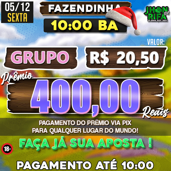 COMPLETO: R$20,50 PARA R$400,00 / METADE: R$10,25 PARA R$200,00