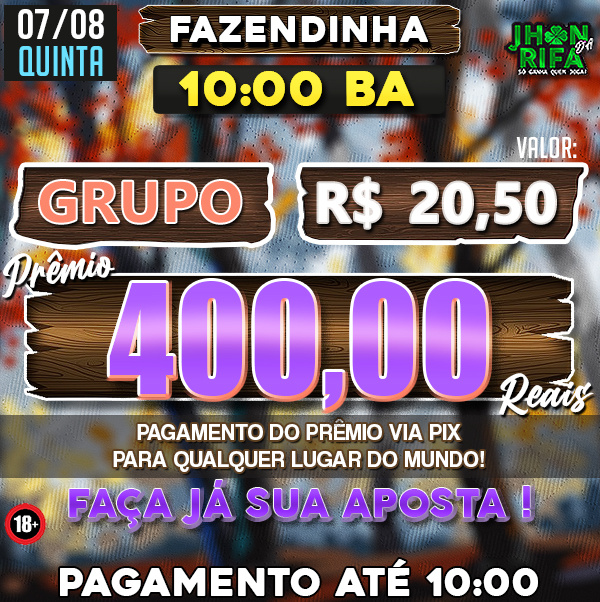 COMPLETO: R$20,50 PARA R$400,00 / METADE: R$10,25 PARA R$200,00