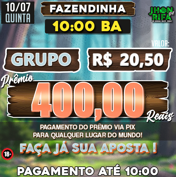 COMPLETO: R$20,50 PARA R$400,00 / METADE: R$10,25 PARA R$200,00