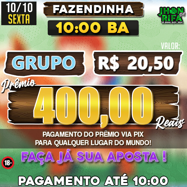 COMPLETO: R$20,50 PARA R$400,00 / METADE: R$10,25 PARA R$200,00