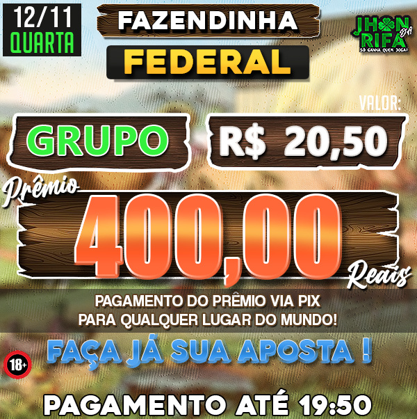 COMPLETO: R$20,50 PARA R$400,00 / METADE: R$10,25 PARA R$200,00