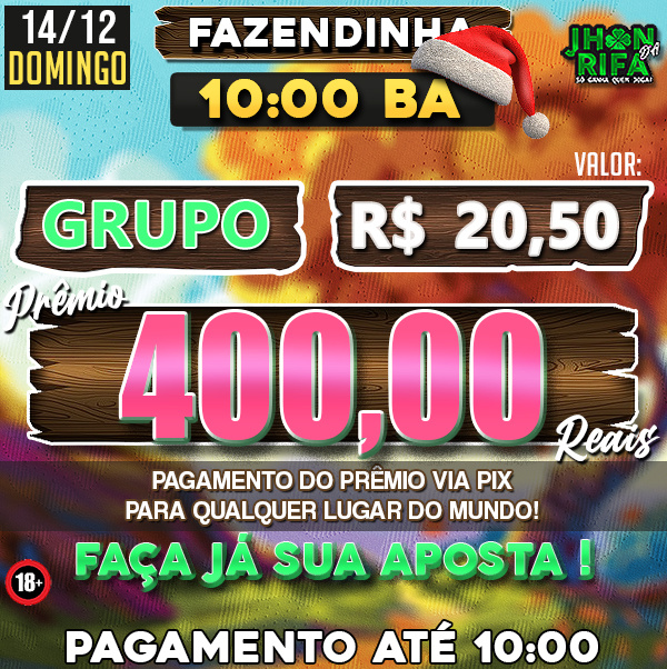 COMPLETO: R$20,50 PARA R$400,00 / METADE: R$10,25 PARA R$200,00