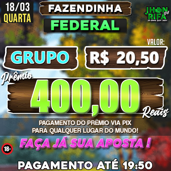 COMPLETO: R$20,50 PARA R$400,00 / METADE: R$10,25 PARA R$200,00