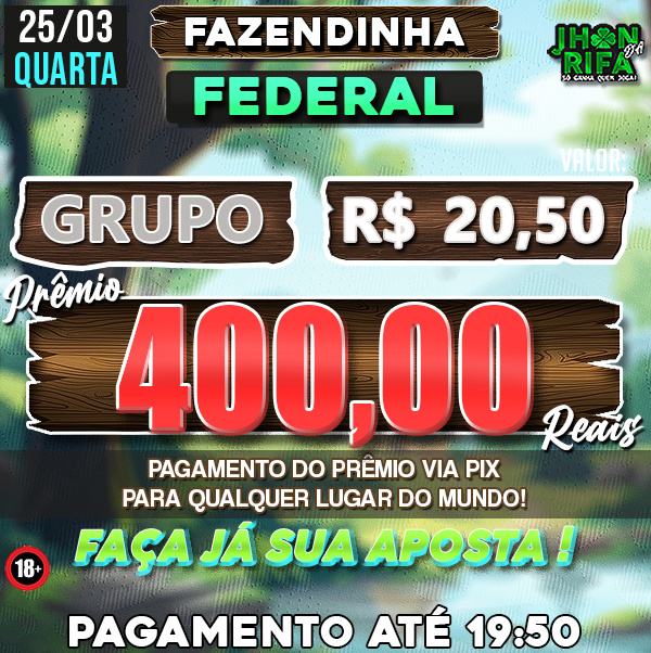 COMPLETO: R$20,50 PARA R$400,00 / METADE: R$10,25 PARA R$200,00