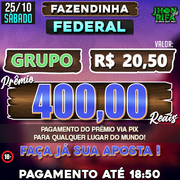 COMPLETO: R$20,50 PARA R$400,00 / METADE: R$10,25 PARA R$200,00