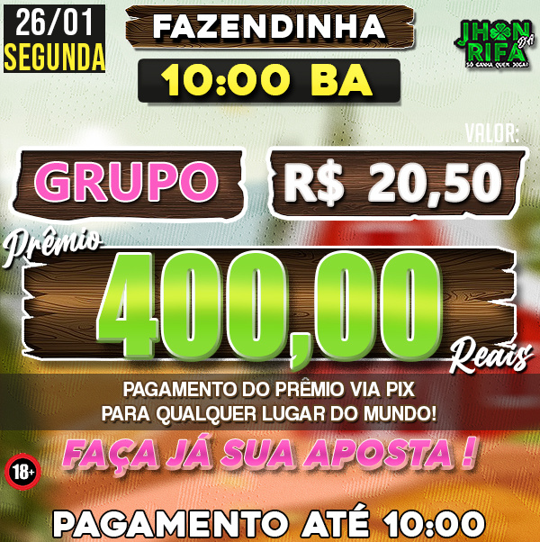 COMPLETO: R$20,50 PARA R$400,00 / METADE: R$10,25 PARA R$200,00