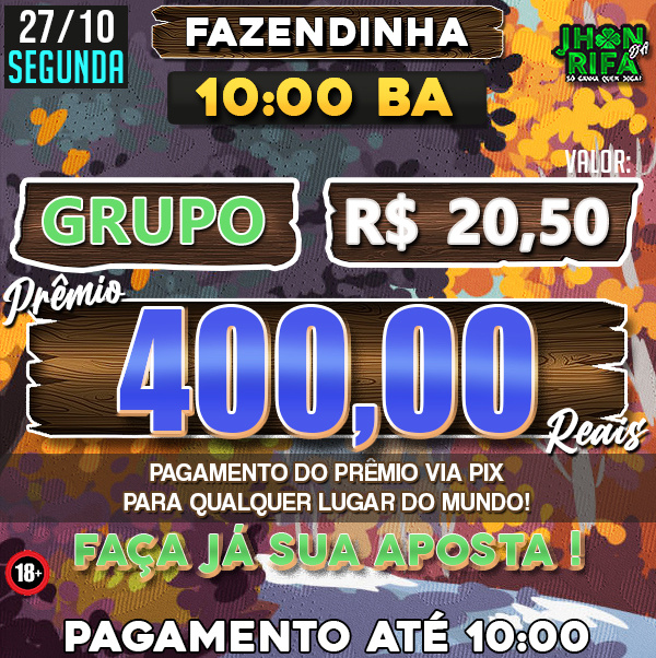 COMPLETO: R$20,50 PARA R$400,00 / METADE: R$10,25 PARA R$200,00