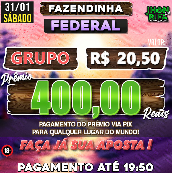 COMPLETO: R$20,50 PARA R$400,00 / METADE: R$10,25 PARA R$200,00