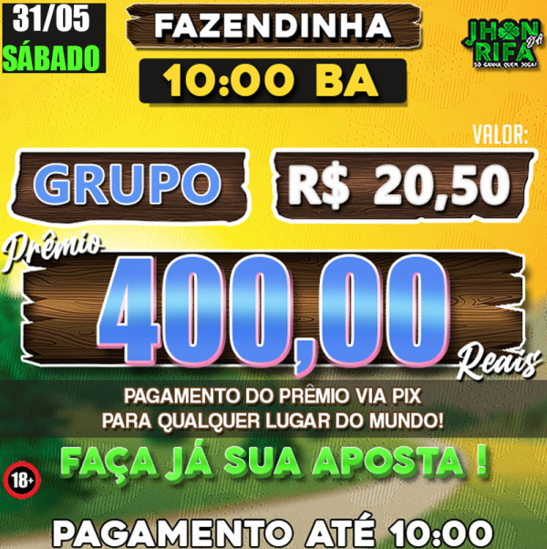 COMPLETO: R$20,50 PARA R$400,00 / METADE: R$10,25 PARA R$200,00