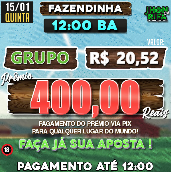 COMPLETO: R$20,52 PARA R$400,00 / METADE: R$10,26 PARA R$200,00
