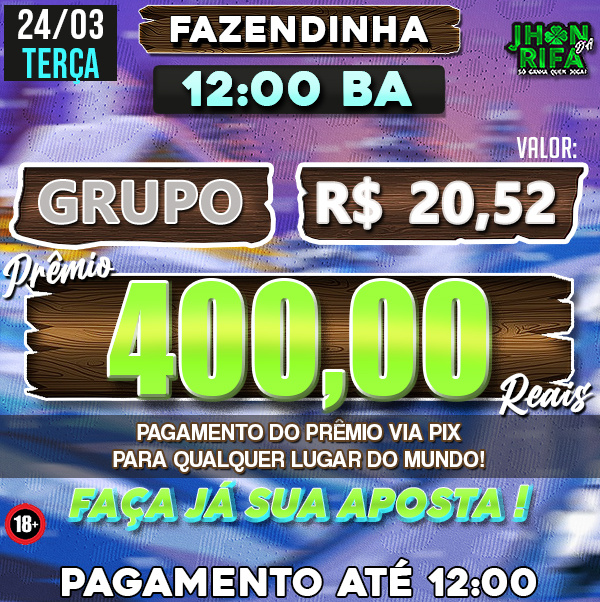 COMPLETO: R$20,52 PARA R$400,00 / METADE: R$10,26 PARA R$200,00