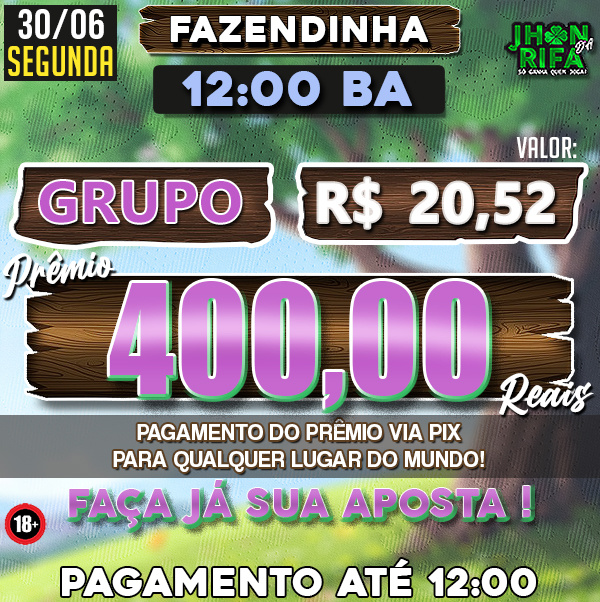 Sorteio: 30/06/2025 às 12:00