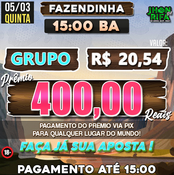 Sorteio: 05/03/2026 às 15:00