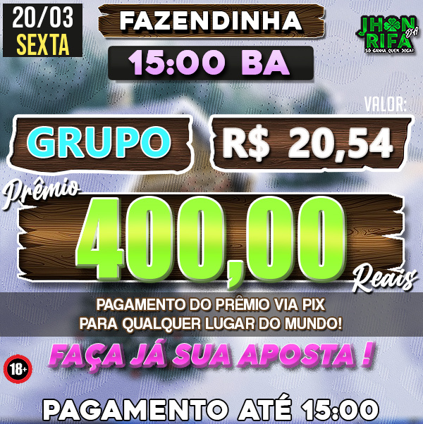 Sorteio: 20/03/2026 às 15:00