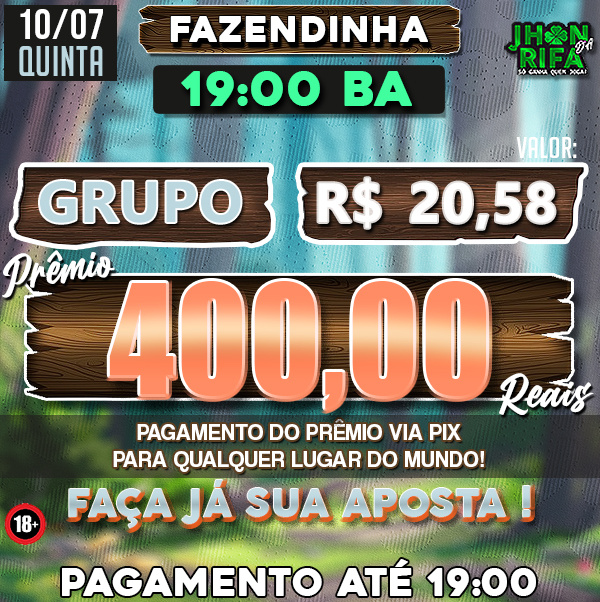COMPLETO: R$20,58 PARA R$400,00 / METADE: R$10,29 PARA R$200,00