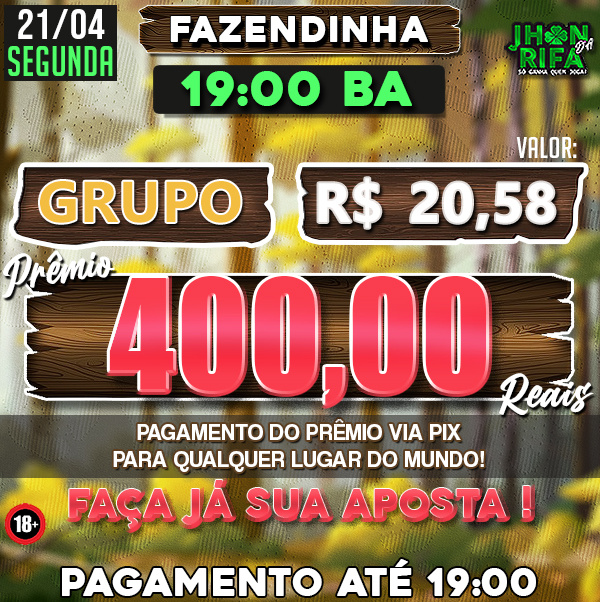 COMPLETO: R$20,58 PARA R$400,00 / METADE: R$10,29 PARA R$200,00