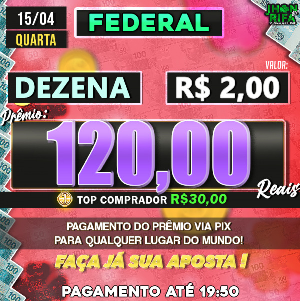 Sorteio: 15/04/2026 às 19:50